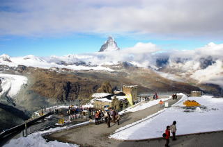マッターホルンをひと目見たいがために 世界中から観光客が集まって来ています。